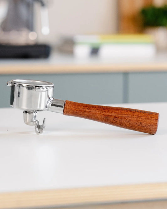 Wir haben viele Materialien und Designs getestet und am Ende unseren eigenen Siebträger mit Doppelauslauf entwickelt.