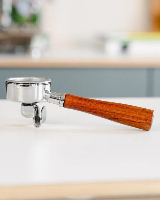 Wir haben viele Materialien und Designs getestet und am Ende unseren eigenen Siebträger mit Doppelauslauf entwickelt.